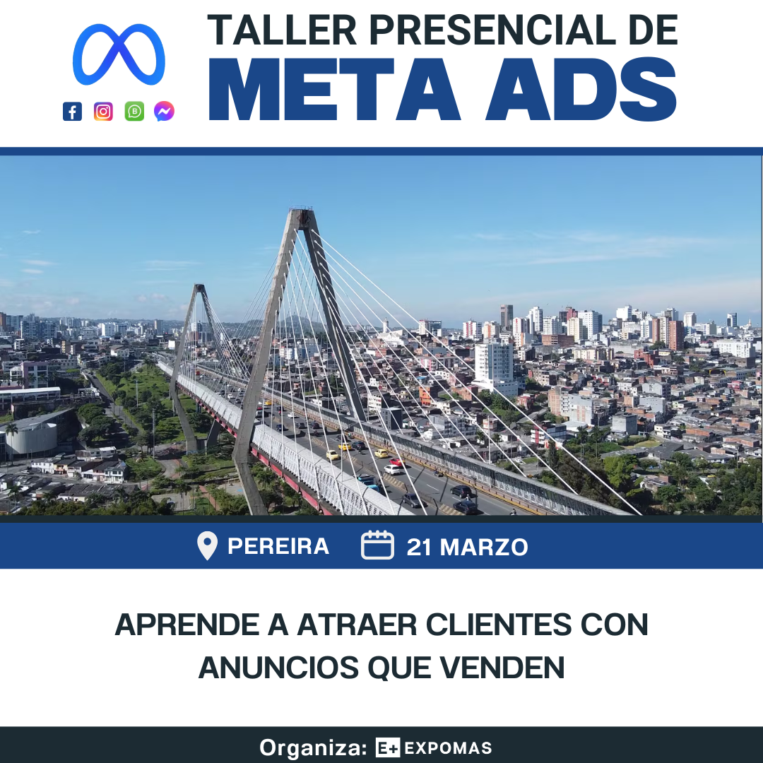 TALLER PRESENCIAL DE FACEBOOK E INSTAGRAM ADS APRENDE CÓMO CREAR ANUNCIOS EN FACEBOOK E INSTAGRAM ADS PARA VENDER MÁS CARTAGENA 21 FEBRERO ¿Qué aprenderás en nuestro taller de Meta Ads? Domina Meta Ads desde cero (y con IA): Aprende a crear campañas efectivas aunque nunca hayas hecho publicidad antes. Segmentación Avanzada + Nuevos Algoritmos: Te enseñamos a trabajar con las últimas actualizaciones de Meta (Andromeda, SAM3 y Advantage+) Potencia tu Publicidad con IA: Integra herramientas de inteligencia artificial para acelerar procesos, crear conceptos creativos, mejorar textos, analizar audiencias y optimizar más rápido Invertir bien y ser rentable: Aprende a definir presupuesto, textear y escalar campañas sin quemar dinero. Copywriting que convierte: Escribe copys y guiones irresistibles y alineados al comportamiento real de los usuarios. Tu Nicho + Cliente Ideal: Aprende a identificar, validar y segmentar audiencias con alta intención usando data + herramientas de IA. Optimización + Diagnóstico: Aprende a leer métricas como un media buyer para saber qué arreglar cuando algo no funciona. Práctico al 100%: No es teoría. Haces campañas reales en tu propio computador, con ejercicios guiados paso a paso. Lo que hace único nuestro taller ¡Descubre cómo nuestros cursos pueden transformar tu presencia en Redes Sociales! Práctico y Presencial La metodología 100% práctica, donde aprenderás haciendo, con tu portátil. Impartido por expertos Contamos con expertos de Meta, que tienen experiencia real y técnica. Actualizado y completo: Aprenderás lo último en segmentación y cómo aprovechar las herramientas de IA. ¿Quién será tu instructor? ¡Ellos lo practican todos los días! Kevin Guerrero Trafficker Digital Desde Cartagena: Empresario, Trafficker y Estratega Digital con 14 años de experiencia y más de 2.000 millones de pesos colombianos invertidos en Publicidad Digital. Ayudo a empresarios y emprendedores a vender más, especializado en Facebook, Instagram y WhatsApp. Temática y sesiones ¡Únete a nuestro taller para empresarios y emprendedores que quieren llevar su negocio a otro nivel con anuncios publicitarios! SESIÓN 1 - LO BÁSICO E IMPORTANTE ✅ Aprende a comunicar y conocer tu producto o servicio: Descubre cómo comunicar eficazmente los beneficios y características de tu producto o servicio para atraer la atención de tu audiencia en Meta Ads. ✅ Según tu producto y servicio, conoce la forma correcta de invertir en Meta Ads: Entiende cómo adaptar tus estrategias de inversión en publicidad de acuerdo con las características y necesidades específicas de tu producto o servicio. ✅ Embudo de venta e indicadores de Meta Ads: Aprende sobre el embudo de ventas y los indicadores clave de rendimiento (KPIs) relevantes en Meta Ads para medir el éxito de tus campañas publicitarias y optimizar tus resultados. ✅ Encuentra el nicho de mercado y cliente ideal en Meta Ads: Aprende a utilizar las herramientas disponibles en Meta Ads para identificar y segmentar correctamente a tu público objetivo, maximizando así la eficacia de tus campañas publicitarias. ✅ Inteligencia Artificial + Meta Ads: Explora cómo aprovechar la inteligencia artificial en Meta Ads para optimizar la segmentación, personalización y rendimiento de tus anuncios. ✅ Elegir creativos (imágenes y videos) que funcionan: Descubre las mejores prácticas para seleccionar imágenes y videos impactantes que capturen la atención de tu audiencia y generen resultados positivos en tus campañas publicitarias. ✅ Creación de copys para anuncios persuasivos: Aprende a redactar copys persuasivos y convincentes que impulsen la acción de tu audiencia y mejoren el rendimiento de tus anuncios en Meta Ads SESIÓN 2 - LOS PILARES DE UNA CAMPAÑA PUBLICITARIA ✅ Conoce el administrador comercial de Meta: Familiarízate con el administrador comercial de Meta y sus funciones, que te permitirán gestionar de manera eficiente tus cuentas publicitarias y acceder a herramientas avanzadas de análisis y gestión. ✅ Configura tu negocio en el administrador comercial: Aprende a configurar correctamente tu negocio en el administrador comercial de Meta, incluyendo la configuración de páginas de Facebook, cuentas publicitarias y más. ✅ Métodos y formas de pago: Explora los diferentes métodos de pago disponibles en Meta Ads y aprende a configurar tus preferencias de facturación de manera adecuada. SESIÓN 3 - LANZANDO CAMPAÑA PUBLICITARIA ✅ Crear anuncio: Descubre cómo crear anuncios efectivos en Meta Ads, desde la selección de objetivos hasta la configuración de creatividades y opciones de segmentación. ✅ Elegir objetivo de campaña: Aprende a seleccionar el objetivo adecuado para tus campañas publicitarias en Meta Ads, en función de tus objetivos comerciales específicos. ✅ Configurar campaña advantage +/-: Explora las opciones avanzadas de configuración de campañas en Meta Ads y aprende a aprovechar las ventajas y minimizar las limitaciones de cada opción. ✅ Segmentar como un pro: Dominarás las técnicas avanzadas de segmentación en Meta Ads para llegar a audiencias altamente relevantes y aumentar la efectividad de tus anuncios. ✅ Seguimiento de campaña: Aprende a realizar un seguimiento efectivo del rendimiento de tus campañas publicitarias en Meta Ads, utilizando métricas clave y herramientas de análisis para optimizar continuamente tus resultados. Testimonios de nuestros alumnos ¡Descubre las experiencias inspiradoras de quienes han participado en nuestros talleres! https://expomas.com.co/wp-content/uploads/2024/05/WhatsApp-Video-2025-01-11-at-4.45.21-PM.mp4https://expomas.com.co/wp-content/uploads/2024/05/Testimonio-resultado.mp4https://expomas.com.co/wp-content/uploads/2024/05/testimonio-2-curso.mp4 ¡APRENDE Y DESTACA EN FACEBOOK ADS! ¡Solo quedan algunos cupos disponibles! Asegura tu lugar ahora mismo y no te pierdas esta oportunidad única de aprender y